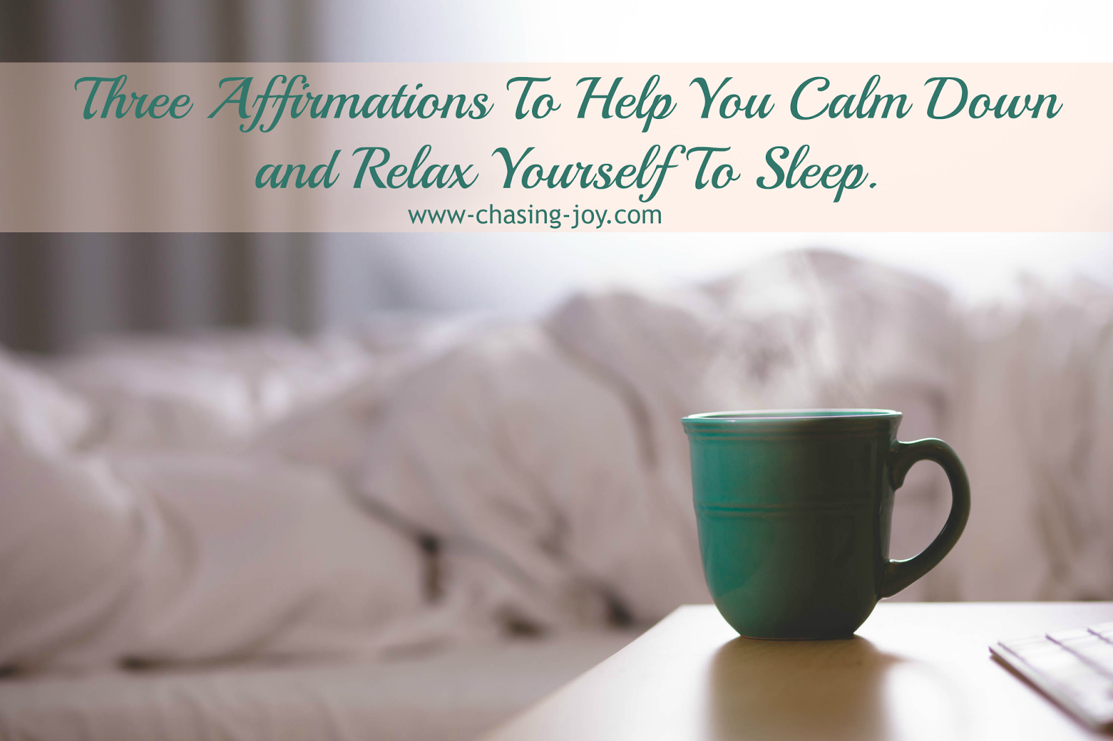 Do you ever have trouble sleeping? I do. Often on nights before work days I have trouble falling asleep. The problem is my brain is already thinking about the next day. It is already working and spinning through tomorrows tasks. What I need to do is calm down and relax. If you are like me you do too. Below are three affirmations to help you calm down and relax yourself to sleep.